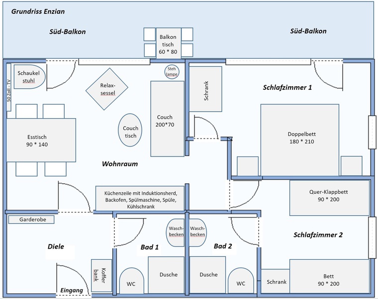 Das Apartmenthaus Sonnenschein bietet auf 2 Etagen für 2 Personen sowie für bis zu 4 Personen Ferienwohnungen, die alle über separate Schlafzimmer und einen Wohnraum mit Küchenzeile verfügen. Alle 3-Zimmer-Wohnungen haben 2 Duschbäder.